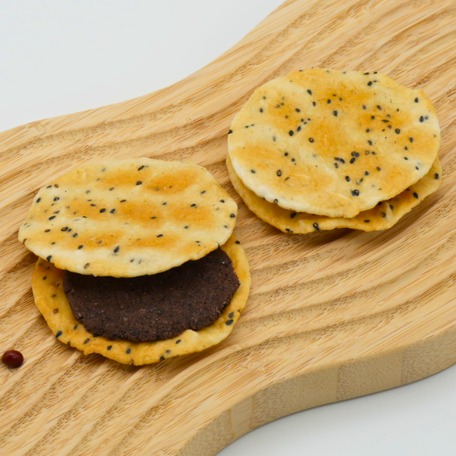 うるち米(秋田県産)、さらし餡、砂糖、有機植物油脂、黒ごま、こめ油、食塩、(一部にごまを含む)