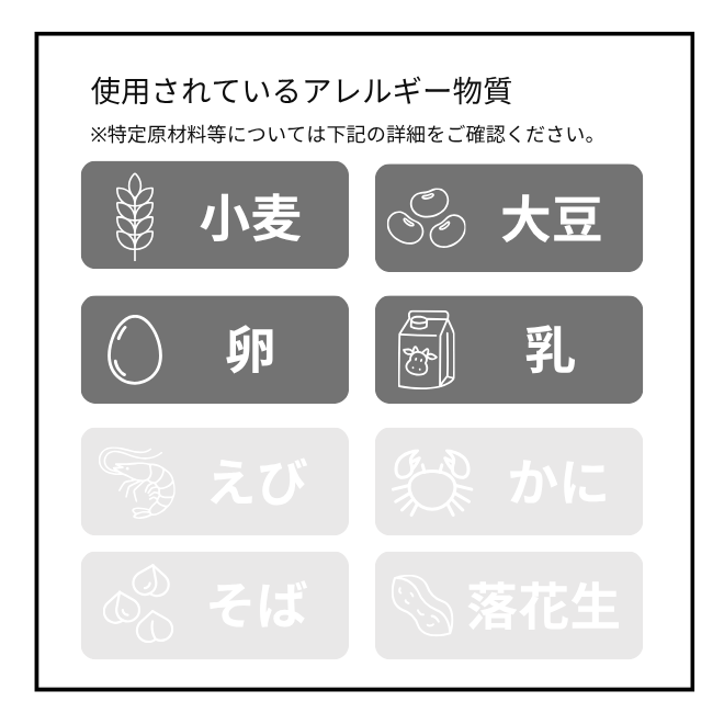 〇いちごクリーム羽二重餅原材料名:砂糖(国内製造)、餅米、白餡、水飴、クリーム、苺、加糖練乳/トレハロース、乳化剤、香料、PH調整剤、増粘多糖類、着色料(赤3、赤106)(原材料の一部に小麦、卵、乳成分を含む)〇生クリーム入り抹茶羽二重餅原材料名:砂糖(国内製造)、餅米、白餡、水飴、クリーム、抹茶/トレハロース、乳化剤、香料、PH調整剤、増粘多糖類(原材料の一部に小麦、卵、乳成分を含む)〇えだまめ羽二重餅原材料名:砂糖(国内製造)、餅米、白餡、枝豆、水飴、クリーム、寒天、食塩/トレハロース、乳化剤、香料、PH調整剤、増粘多糖類、着色料(黄4、黄5、青1)(原材料の一部に小麦、卵、乳成分、大豆を含む)〇黒蜜クリーム入りくるみ羽二重餅原材料名:砂糖(国内製造)、餅米、白餡、水飴、クリーム、胡桃、黒砂糖、寒天/トレハロース、乳化剤、香料、PH調整剤、増粘多糖類(原材料の一部に小麦、卵、乳成分、大豆を含む)〇ティラミス羽二重餅(季節の羽二重餅)目安時期:1月~5月末ぐらい原材料名:砂糖(国内製造)、餅米、白餡、水飴、ナチュラルチーズ、クリーム、卵黄、コーヒー豆、ココアパウダー/トレハロース、乳化剤、香料、PH調整剤、増粘多糖類(原材料の一部に小麦、卵、乳成分を含む)〇マンゴークリーム羽二重餅(季節の羽二重餅)目安時期:6月~9月末ぐらい原材料名:砂糖(国内製造)、餅米、白餡、水飴、クリーム、マンゴー、ココナッツミルク、寒天、コーンスターチ/トレハロース、乳化剤、香料、PH調整剤、増粘多糖類(原材料の一部に小麦、卵、乳成分を含む)〇ブルーベリー羽二重餅(季節の羽二重餅)目安時期:6月~9月末ぐらい原材料名:砂糖(国内製造)、餅米、白餡、水飴、クリーム、ブルーベリー、寒天、コーンスターチ/トレハロース、乳化剤、香料、PH調整剤、増粘多糖類(原材料の一部に小麦、卵、乳成分を含む)〇かぼちゃ羽二重餅(季節の羽二重餅)目安時期:10月~12月末ぐらい原材料名:砂糖(国内製造)、餅米、白餡、水飴、クリーム、南瓜、寒天、食塩/トレハロース、乳化剤、香料、PH調整剤、増粘多糖類(原材料の一部に小麦、卵、乳成分を含む)