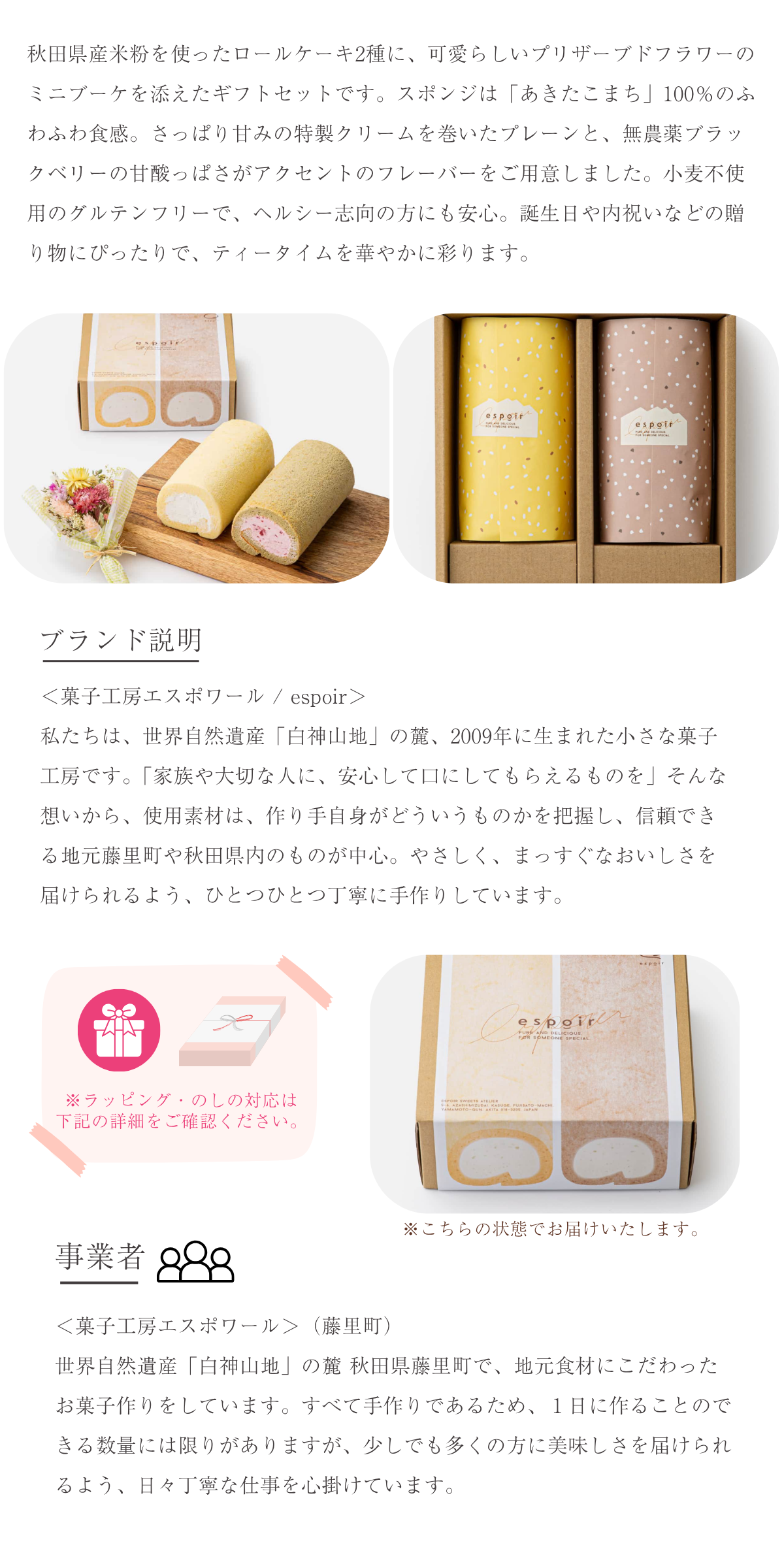 体を想う大人のための米粉ロールケーキセット|ケーキ・お菓子・米粉|菓子工房エスポワール