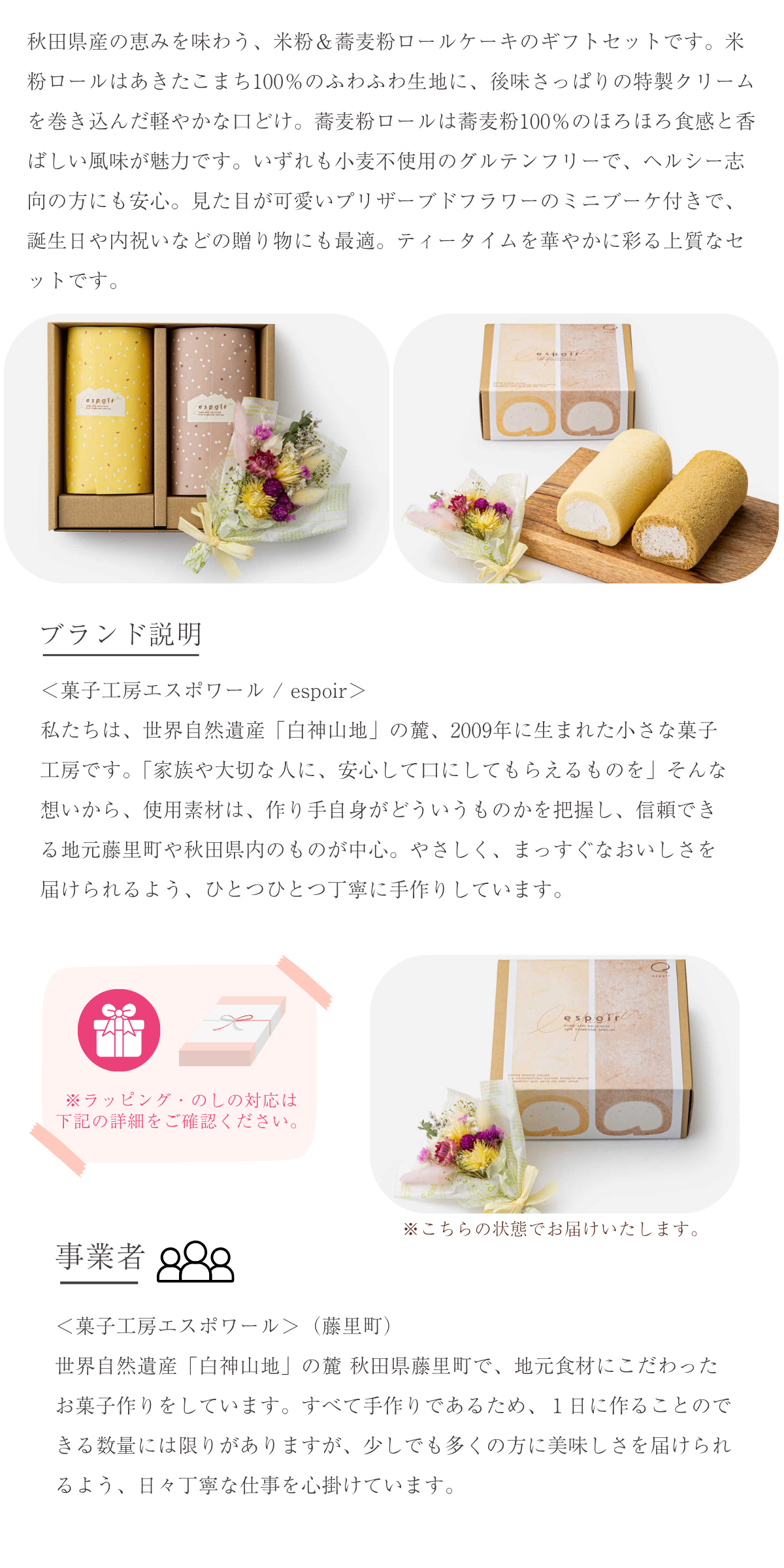 体を想う大人のための米粉と蕎麦粉のロールケーキセット|ケーキ・お菓子・米粉|菓子工房エスポワール