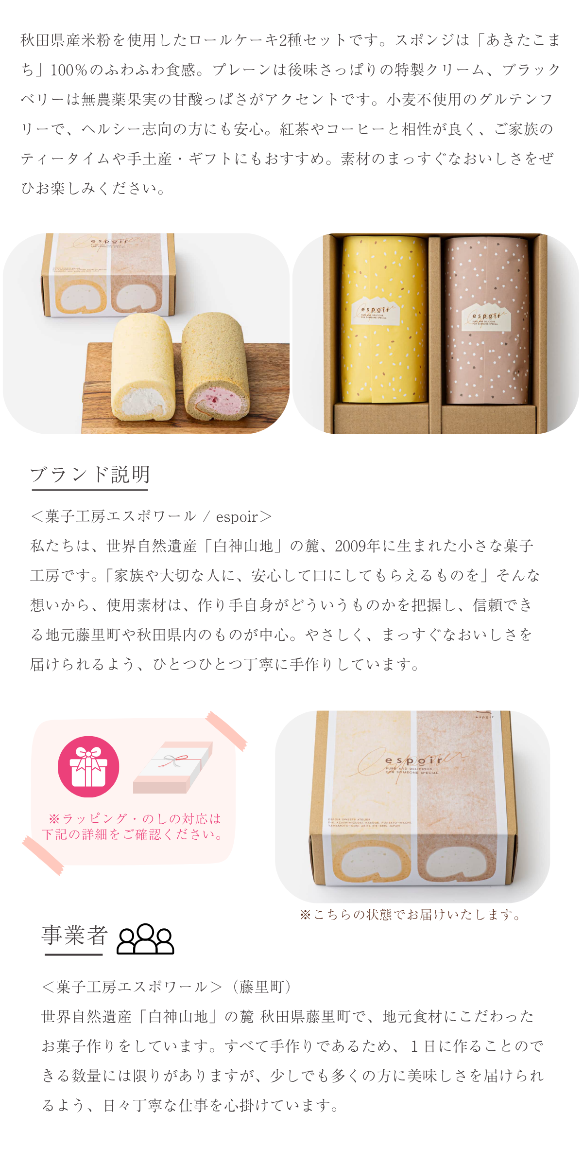 白神ロール2種セット|米粉ロールケーキ/無添加|菓子工房エスポワール