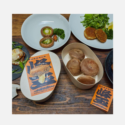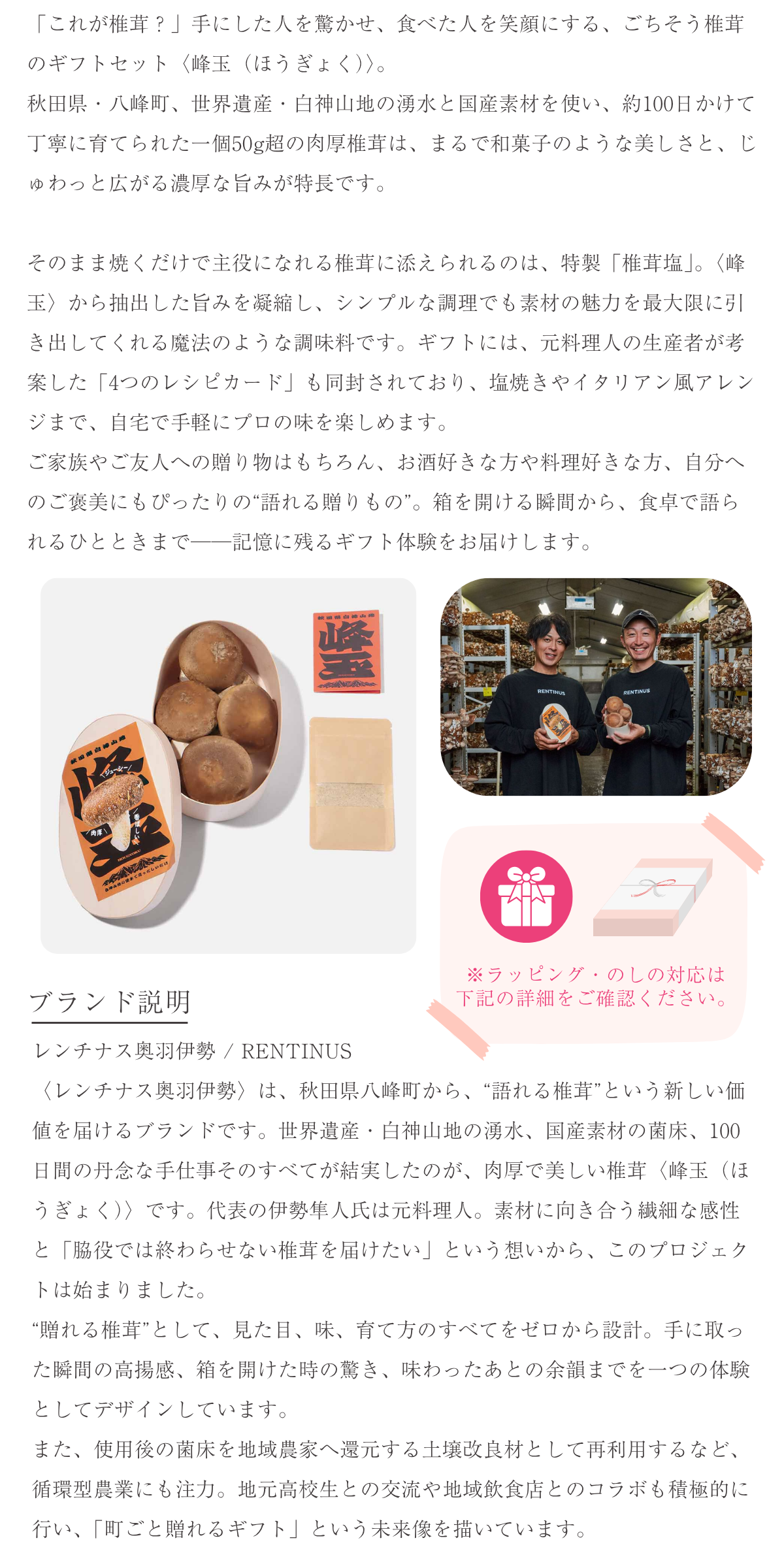 峰玉200g、特製「椎茸塩」15g、オリジナルレシピカード付