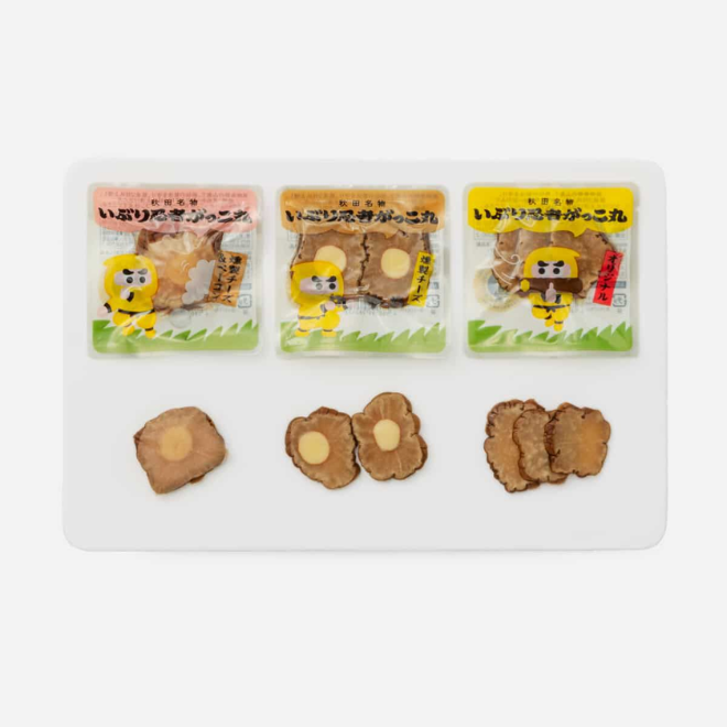 いぶり忍者がっこ丸オリジナル10g×6個、いぶり忍者がっこ丸燻製チーズ10g×6個、いぶり忍者がっこ丸燻製チーズ&ベーコン10g×6個
